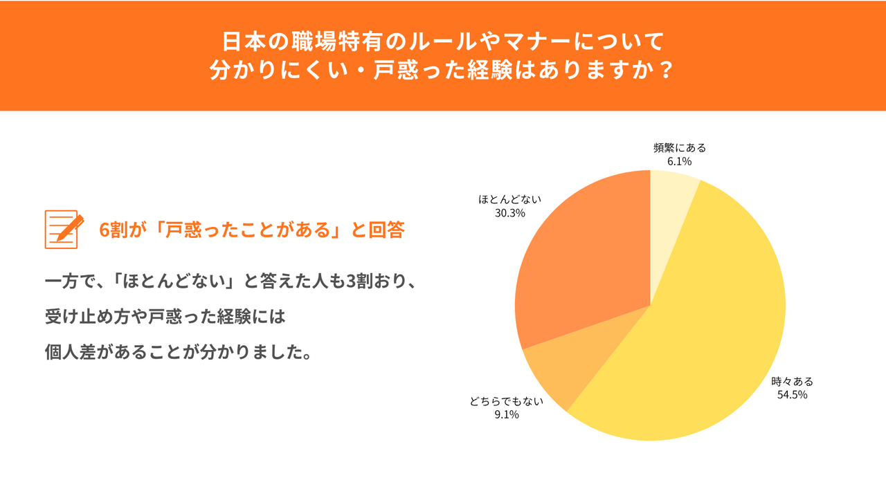 GTNでは、社員を対象に「日本の職場特有のルールやマナーで困ったこと」についてアンケートを行いました📝