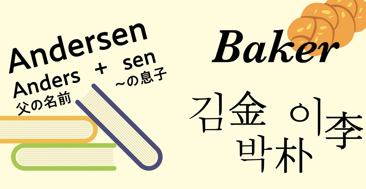 たとえばヨーロッパでは、先祖の職業がそのまま名字になっているケースもあります。ドイツの「シュミット」やロシアの「コヴァリョフ」は、どちらも「鍛冶屋」に由来しています。童話作家ハンス・クリスチャン・アンデルセンの「アンデルセン」も、「アンデルスの息子」という意味を持つ名字として知られています。また、スペインやポルトガルのように、父方と母方、両方の名字を受け継ぐ文化もあります。なまえの中に家族の歴史やつながりが重なっているのが特徴です。
